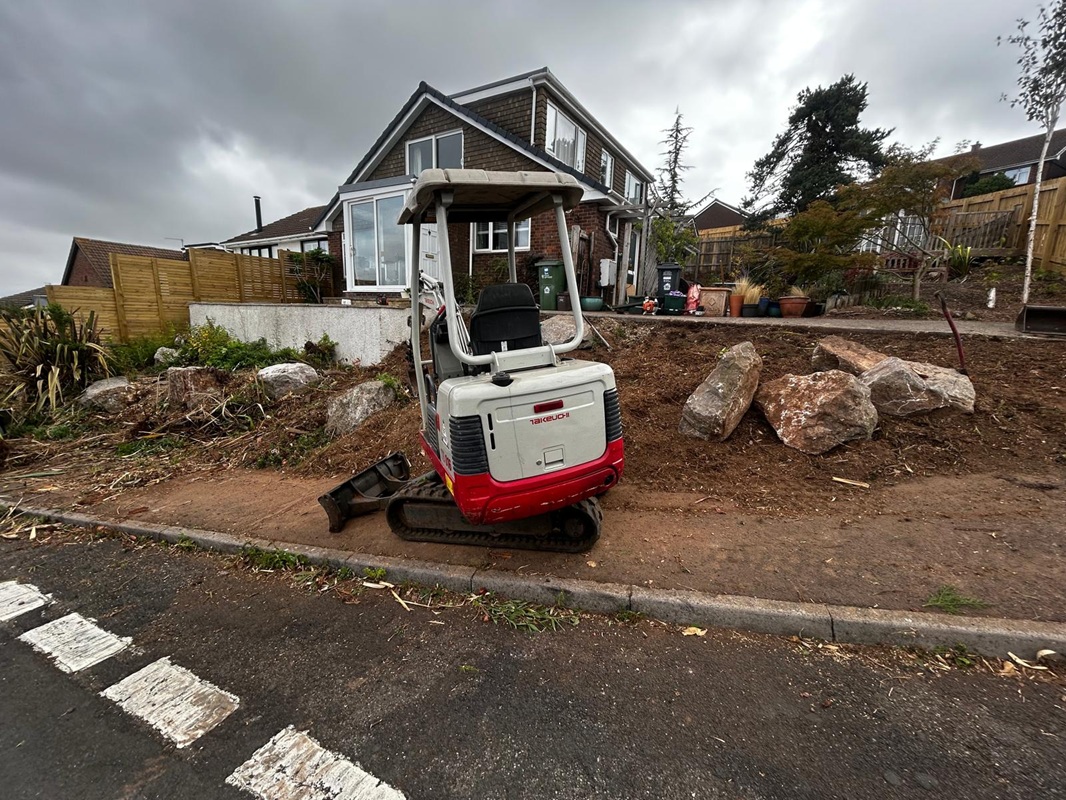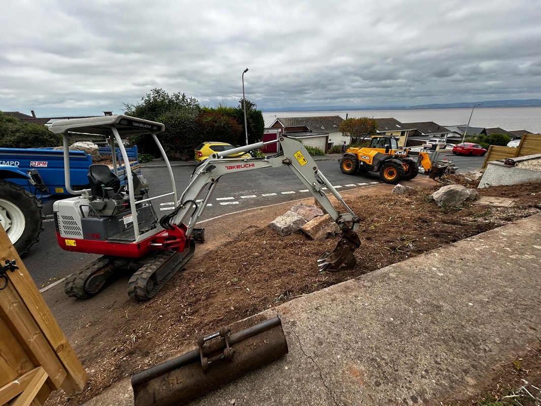 Clearing bank with machines taking all waste away and digging all roots out. Then to remove large rocks off side of bank.