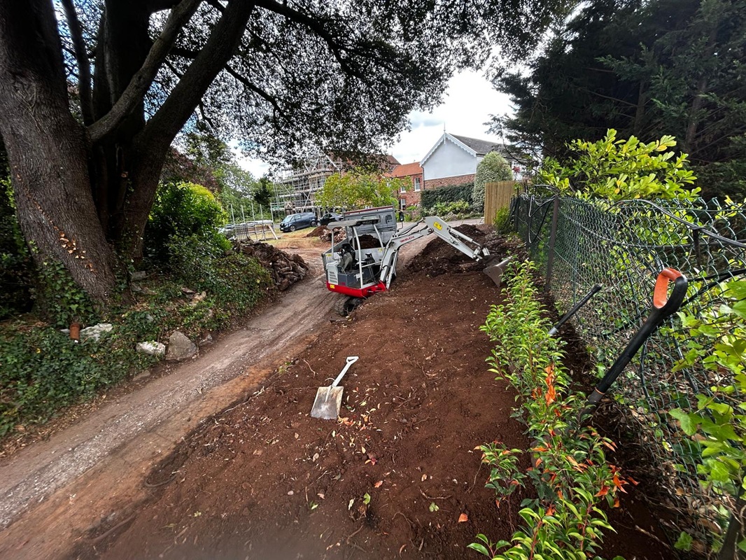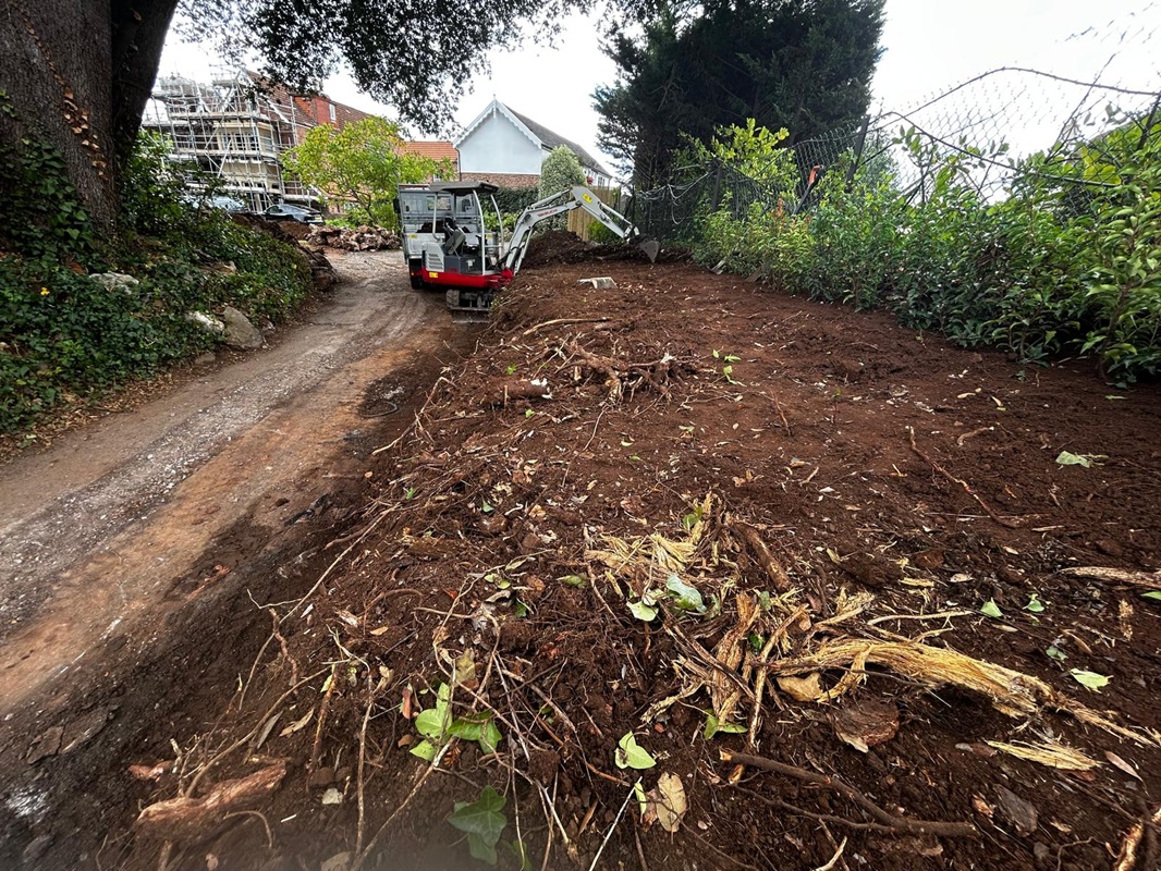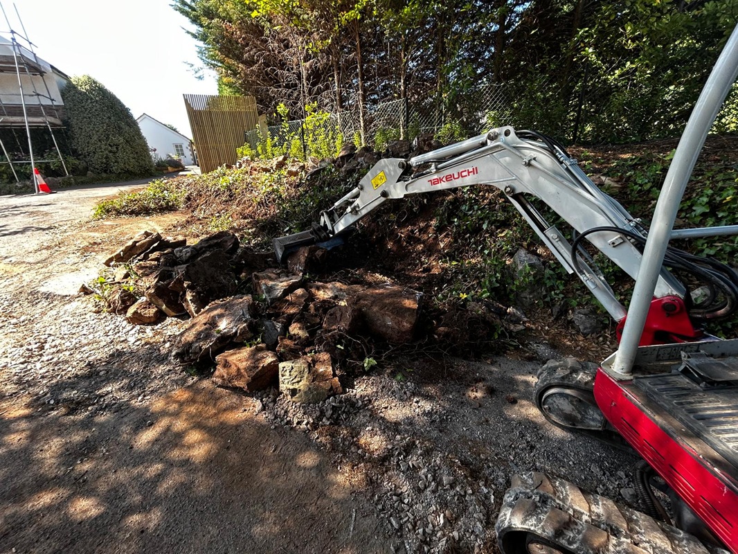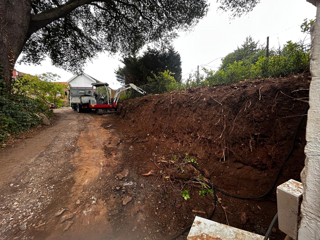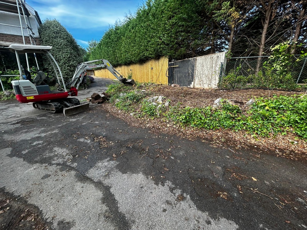 Widening driveway and reducing bank ready for planting. (Taking all waste away.)